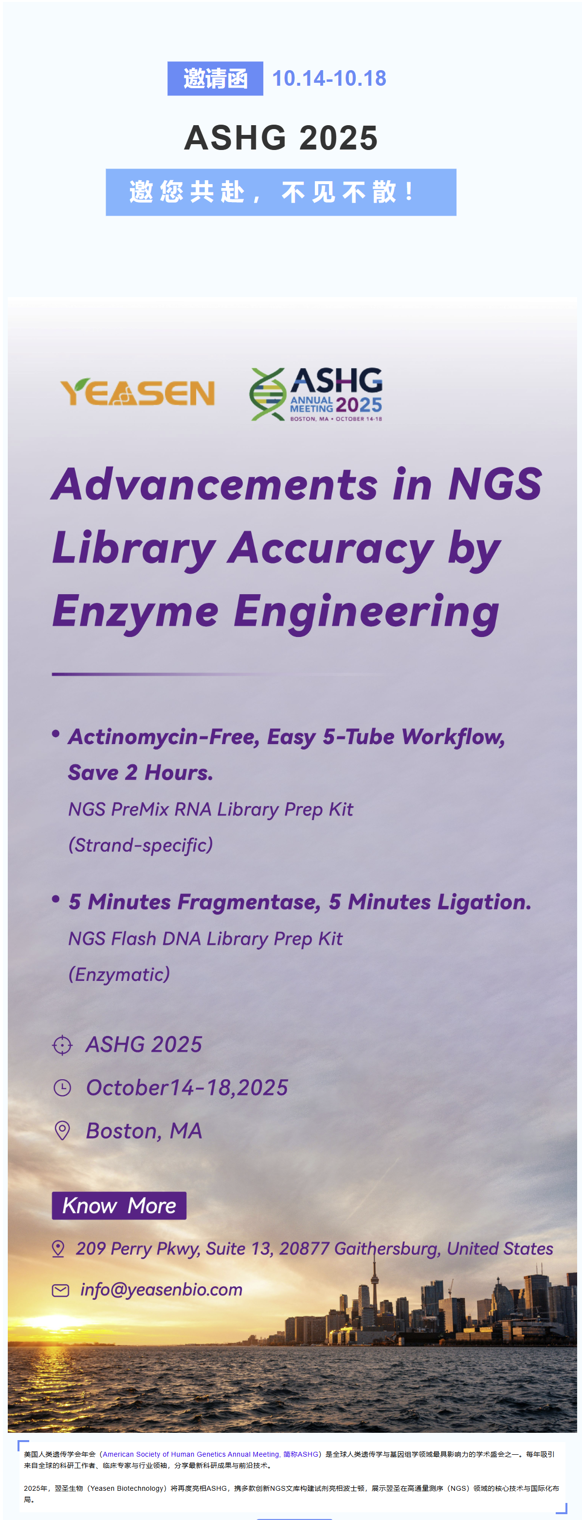 邀请函 | 扬帆海外!翌圣生物亮相美国人类遗传学年会(ASHG 2025)